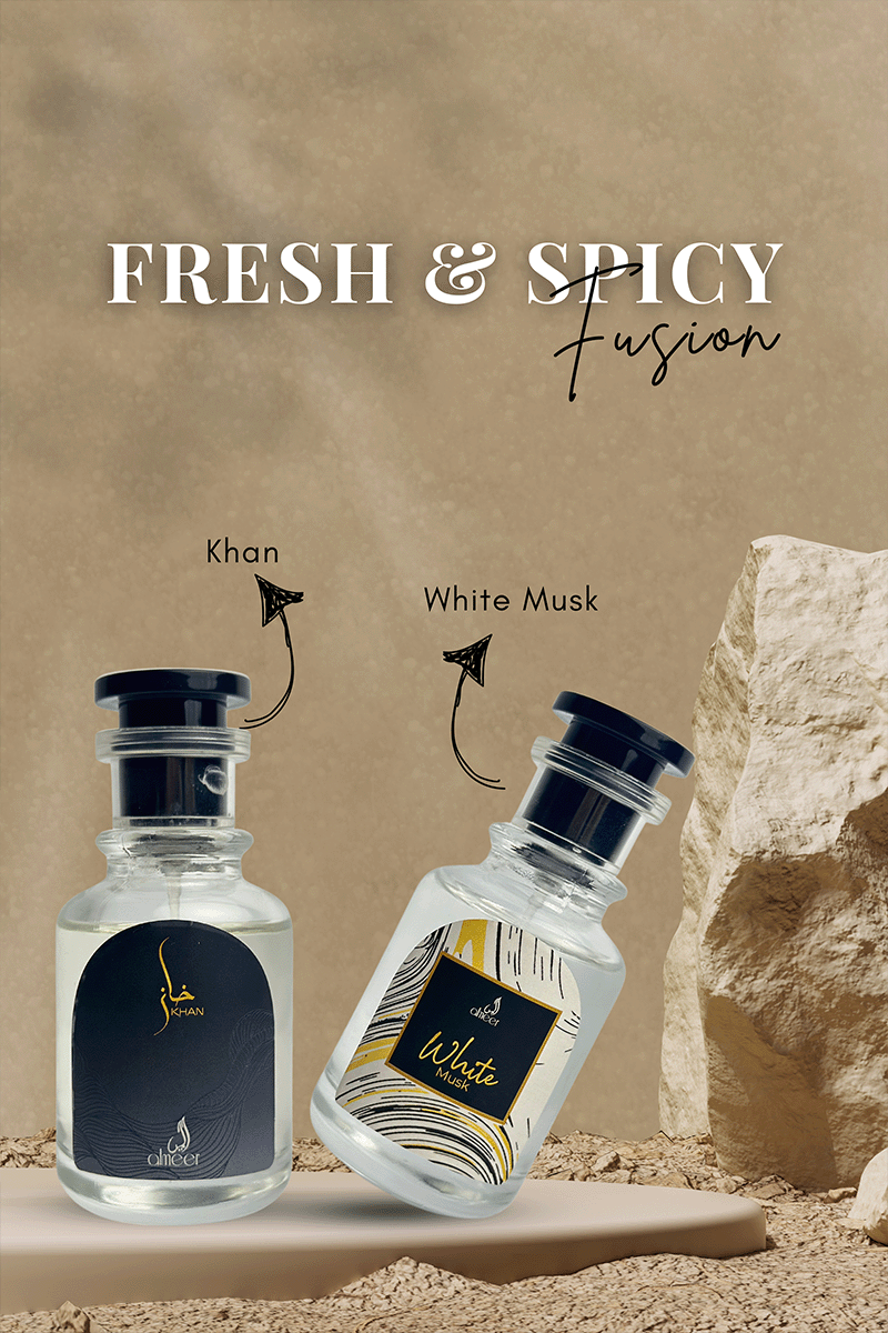 A dynamic balance of clean musk and spicy warmth. White Musk adds a soft, powdery finish, while Khan brings an intense and daring kick.